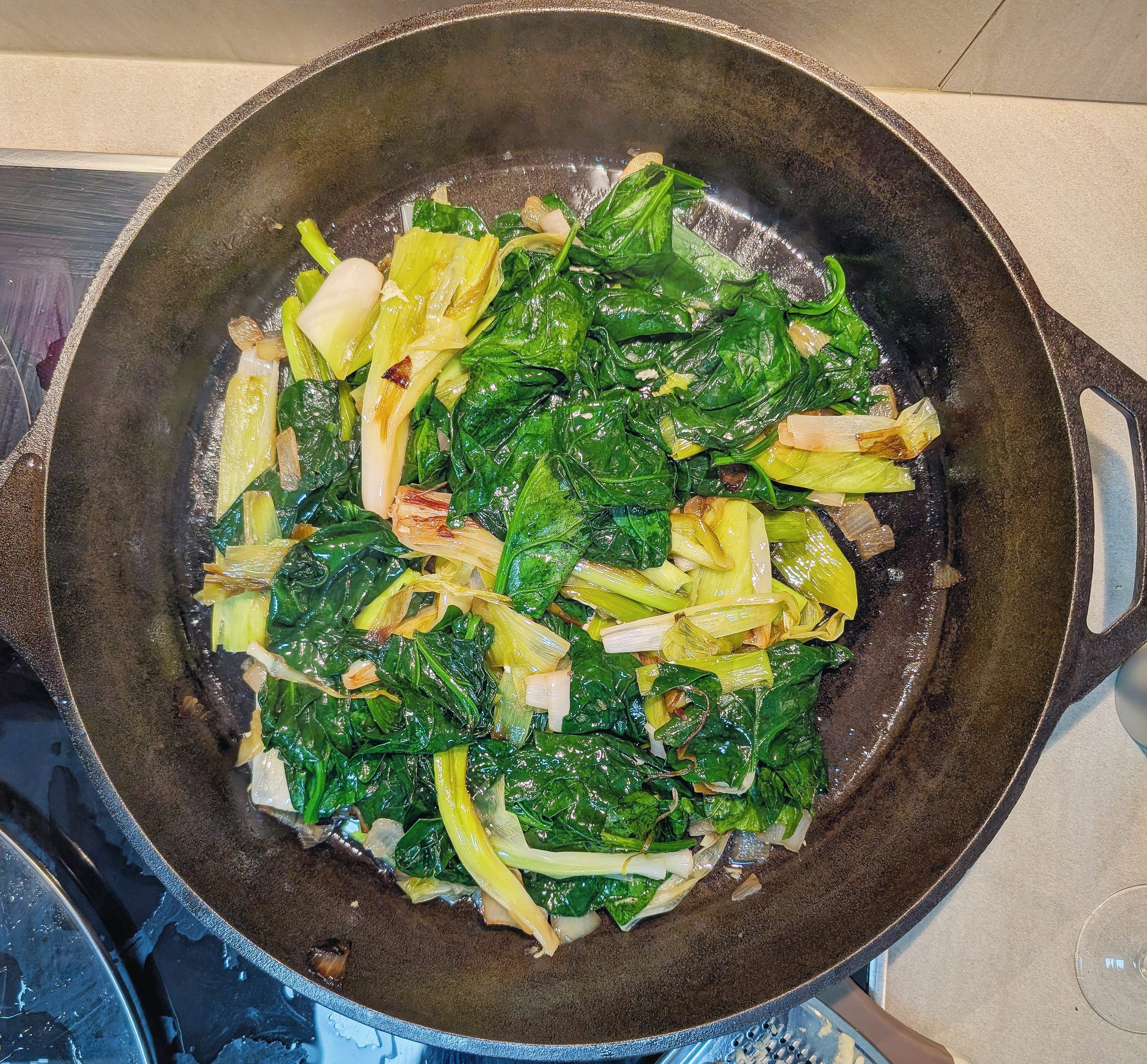 Ce midi c'était : poireaux, épinards, oignon rosé de Roscoff, beurre cru, huile d…